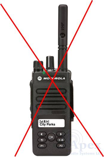 DP2400E, 136-174MHz, 5W, NKP PANR302C - No longer available from Motorola MDH02JDC9VA1AN